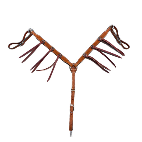 Gladiator Breast Collar in Brown rough out Leather with 8, 2' Stainless steel Rings.