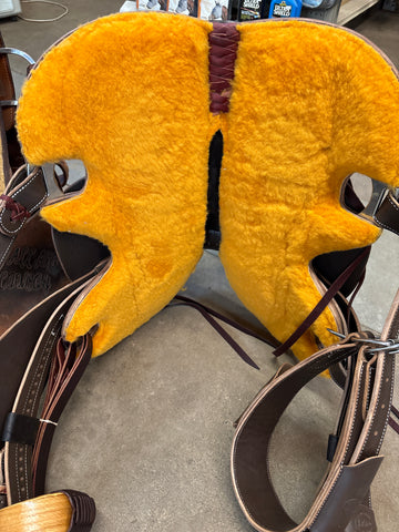 New signature series lightweight cowhorse saddle by Hud Roberts.  Quality  chocolate leather and craftmanship.  Natural fleece.