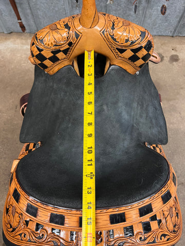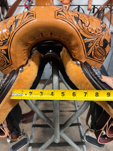 14" hard seat barrel saddle by Scott Thomas saddles. This saddle is well made and fits a horse great.