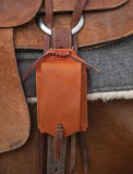 Soft leather cell phone cases attach to the rear flank cinch of the saddle, these come in a variety of colors.