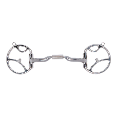 Stainless Steel Western Dee with 2 Hooks with Sweet Iron Low Port Comfort Snaffle (MB 04, Level 2) Copper Inlay. This mouthpiece is made of polished Sweet Iron which naturally oxidizes or rusts. Harmless to horses, it has a sweet taste and promotes salivation.
