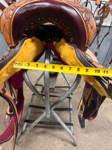 Take a look at the tooling on the seat of this saddle. So unique and different I just love it. This saddle comes in a 14” and 14.5” weight will vary slightly. The 14” weighed 28#.